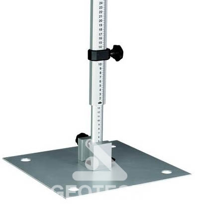 Elevátor. Nasadzuje sa na každý bežný statív, ktorý sa takto stáva vhodným pre rotačné lasery. Elevačná kľuka umožňuje nastavenie nivelety s presnosťou 1 mm. |